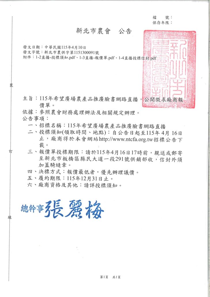 115年希望廣場農產品推廣臉書網路直播