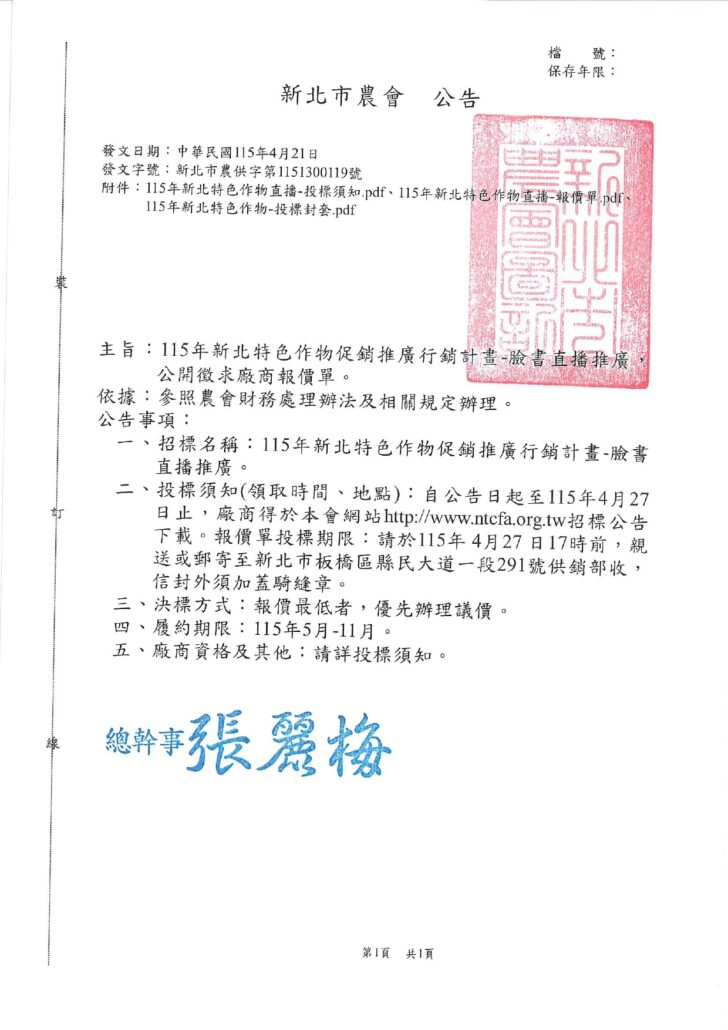 115年新北特色作物直播-投標須知115年新北特色作物直播-報價單115年新北特色作物-投標封套